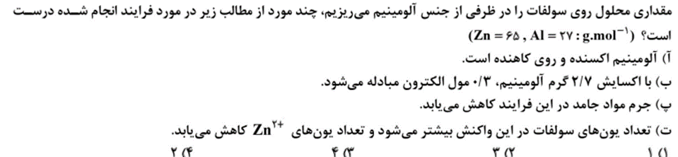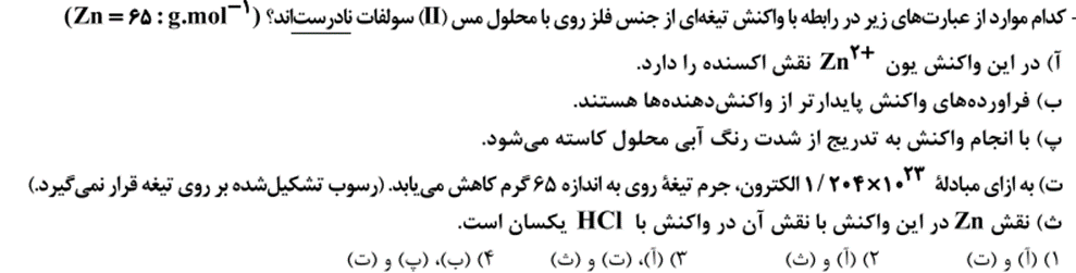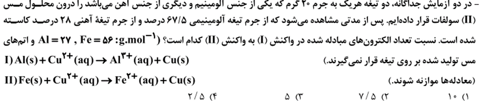 نکته: در واکنش روی با محلول مس (II) سولفات 2 مول الکترون مبادله می شود و فرآورده ها از واکنش دهنده ها پایدارترند.