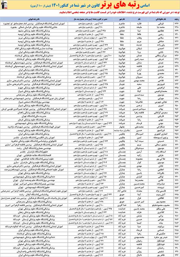 برای دیدن فهرست کامل به فایل ضمیمه مراجعه کنید و در صورتی که نام شما در فایل ضمیمه هم نیست در زیر همین صفحه کامنت بگذارید.
