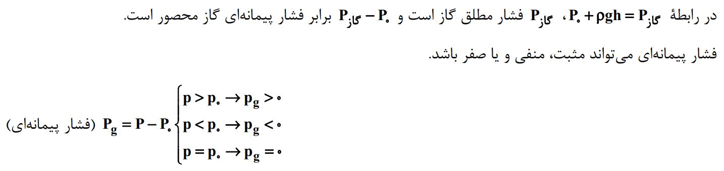نكته: فشاری كه فشارسنج های پزشكی و فشارسنج های تاير خودرو اندازه گيری می كنند در واقع همان فشار پيمانه ای است.