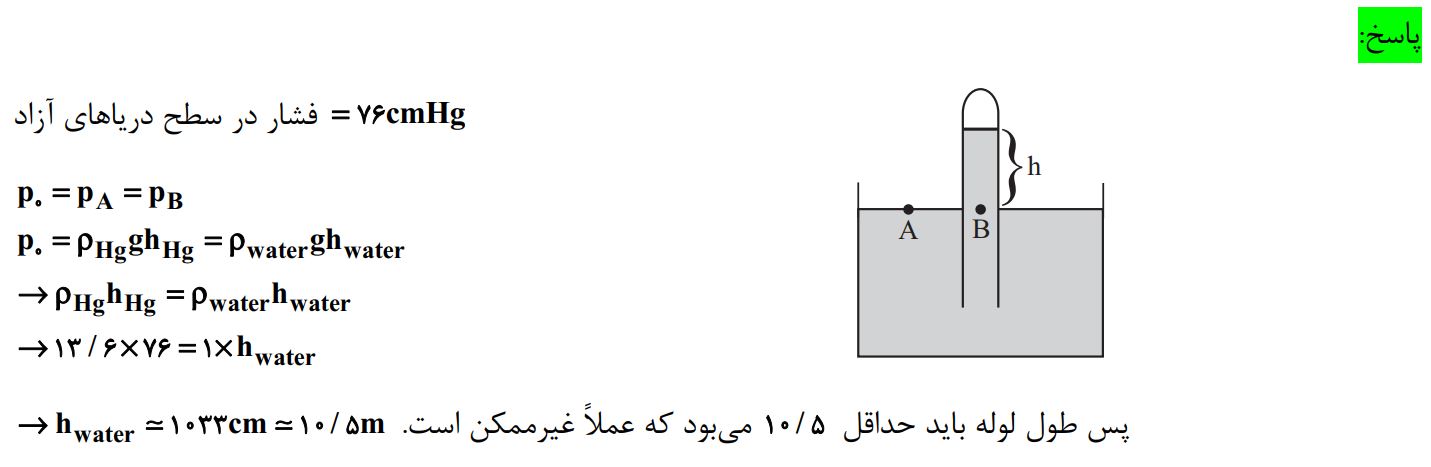 لوله حداقل چند متر بايد می بود؟ (ρHg=13/6, ρwate=1 g/cm3)