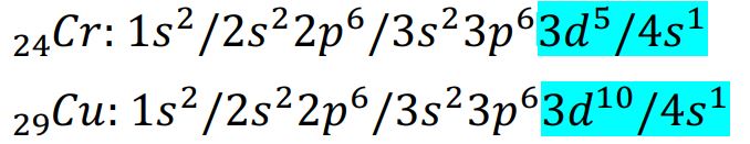 بـرای نمونـه آرايـش 24𝐶𝑟 و 29𝐶𝑢 از اين قاعده پيروی نميكند و برای بدست آوردن آرايش آنها از روش های طيف سنجی پيشرفته استفاده می کنند.