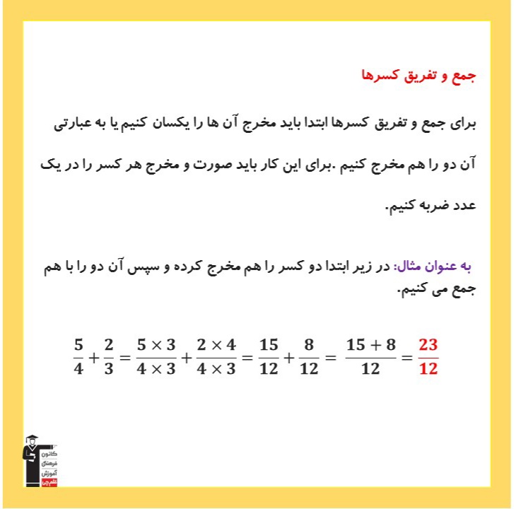 جمع و تفریق کسرها _درسنامه ریاضی ششم دبستان _فاطمه حلاجیان