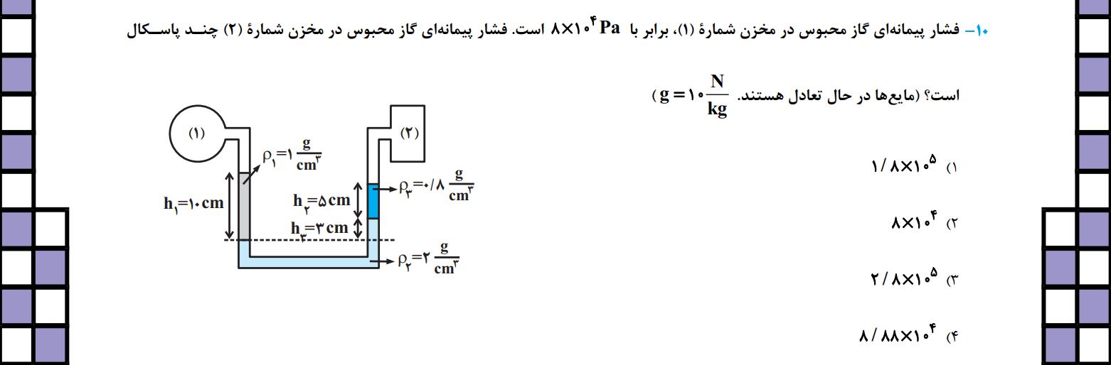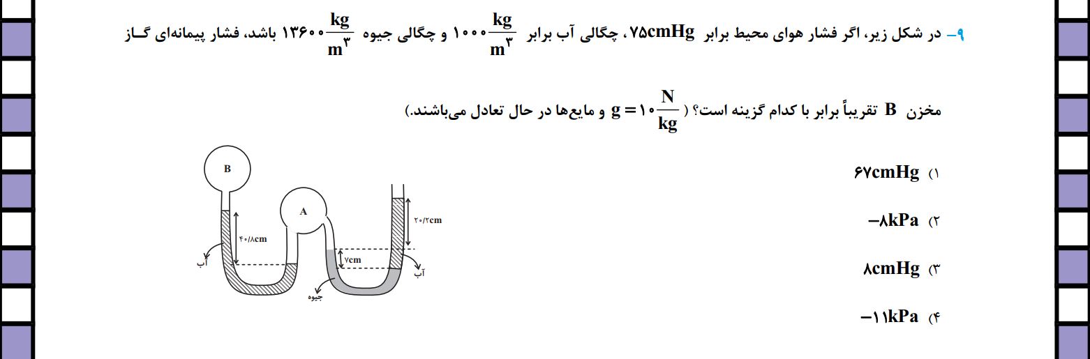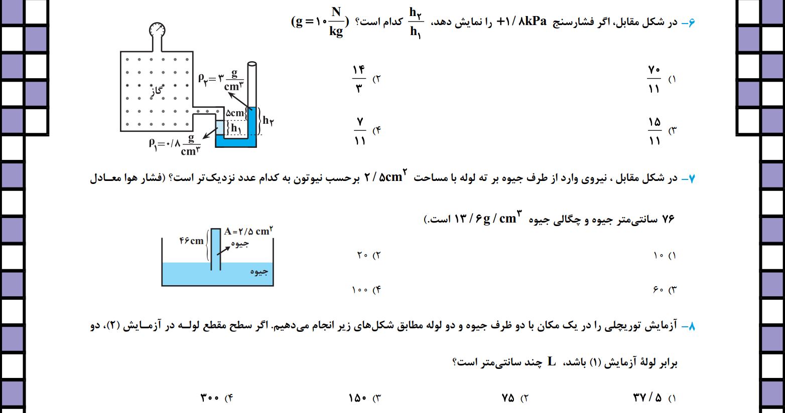یه آزمونک ۱۰ تستی از مبحث فشار در شاره و فشارسنج هوا برای آزمون ۱۸ آذر رو براتون فراهم کردم.