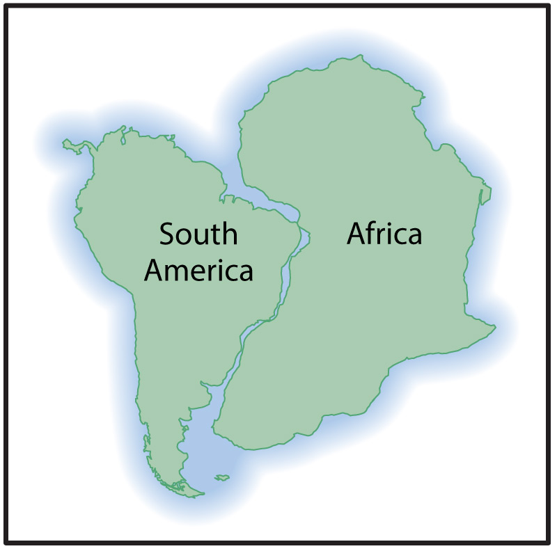 ۳- شباهت کناره قاره ها (خصوصاً آمریکا جنوبی و آفریقا)
