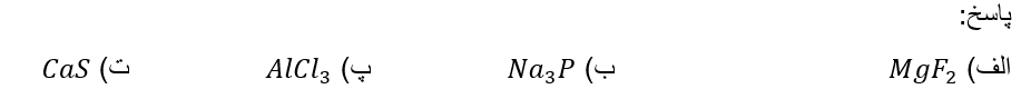 الف) منیزیم فلوئورید ب) سدیم فسفید پ) آلومینیم کلرید ت) کلسیم سولفید