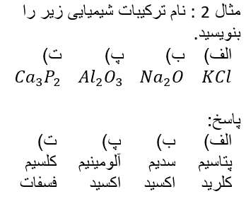 مثال 1 : فرمول شیمیایی ترکیبات زیر را بنویسید.
