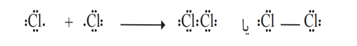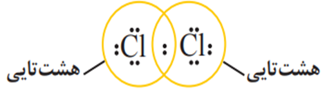 - * با این توصیف هر اتم كلر، تك الكترون خود را با دیگری به اشتراك می گذارد به طوری كه دو الكترون موجود بین دو اتم در آرایش