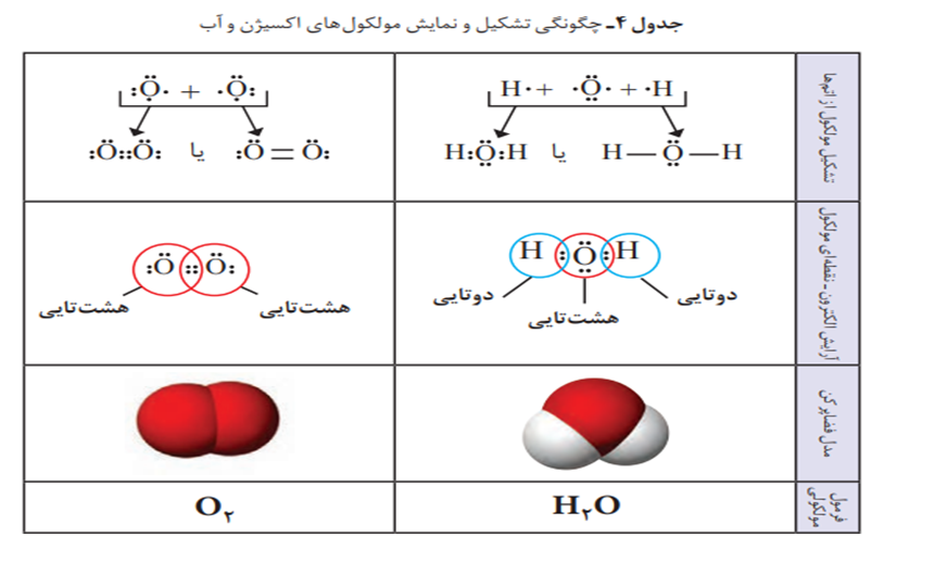 - الكترون ــ نقطهای به هر دوی آنها تعلق دارد. در این وضعیت هر یك از اتمها به آرایش هشتتایی رسیده است.