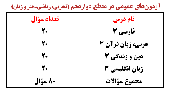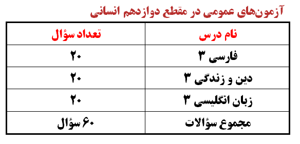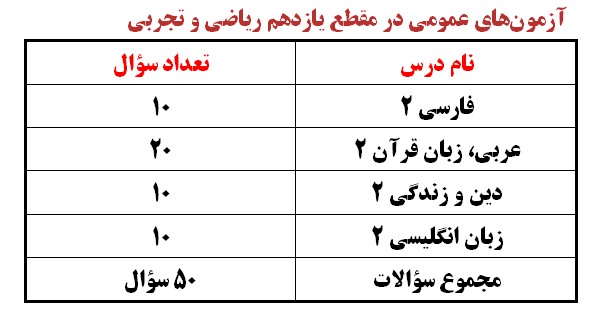 ویژگیهای آزمون عمومی 1 دی- مقاطع دهم، یازدهم و دوازدهم