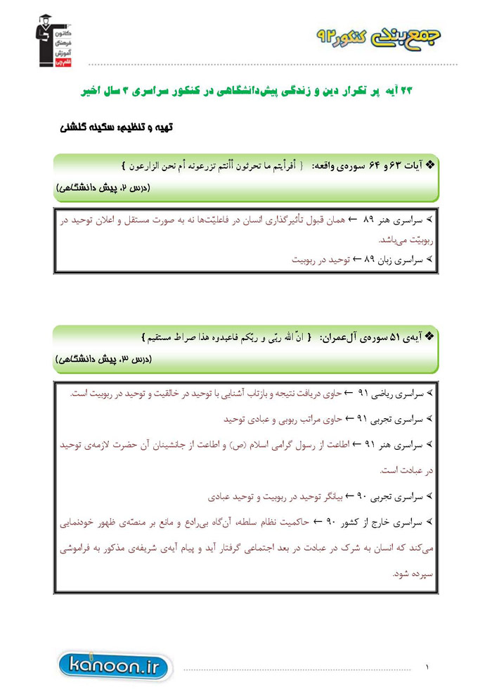 23 آيه پرتکرار دين و زندگي پيش در کنکور