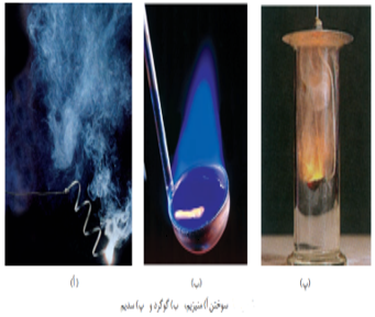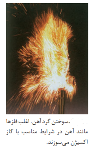 - * برخی عنصرهای فلزی و نافلزی می توانند با اکسیژن بسوزند و به اکسیدهای فلزی و نافلزی تبدیل شوند.