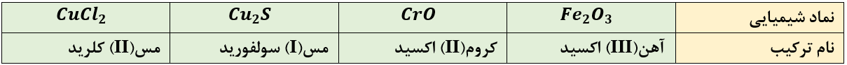 - * بعضی از فلزات بیشتر از یک نوع اکسید در طبیعت دارند. مانند: آهن، کروم، مس و...