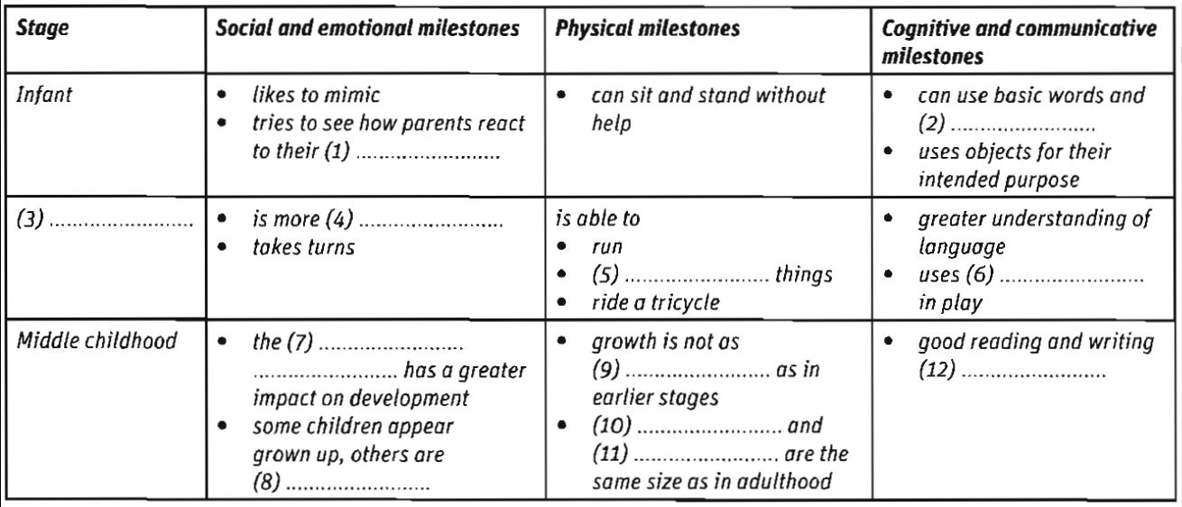 ابتدا سوالات زیر راببینید سپس فایل صوتی را اجرا گنید و به دقت به آن گوش دهید. این فایل در رابطه با مراحل رشد بچه ها است. در هر جای خالی بیش از 2 کلمه برای هر جواب ننویسید.