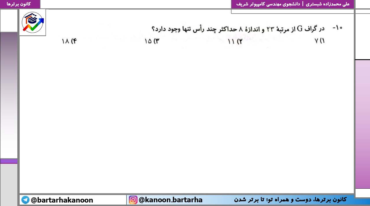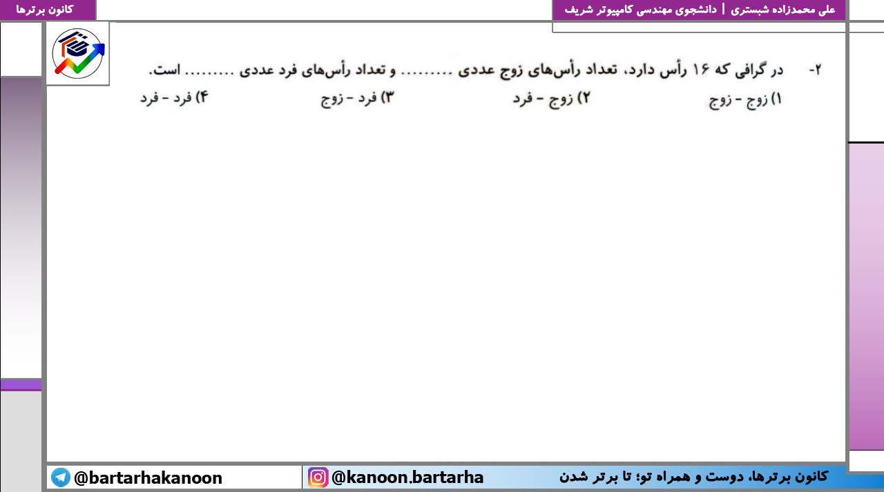 در ادامه مطلب سوالات امتحان نهایی درس۱ گراف، این دفعه با سوالات تستی اومدیم پیشتون.