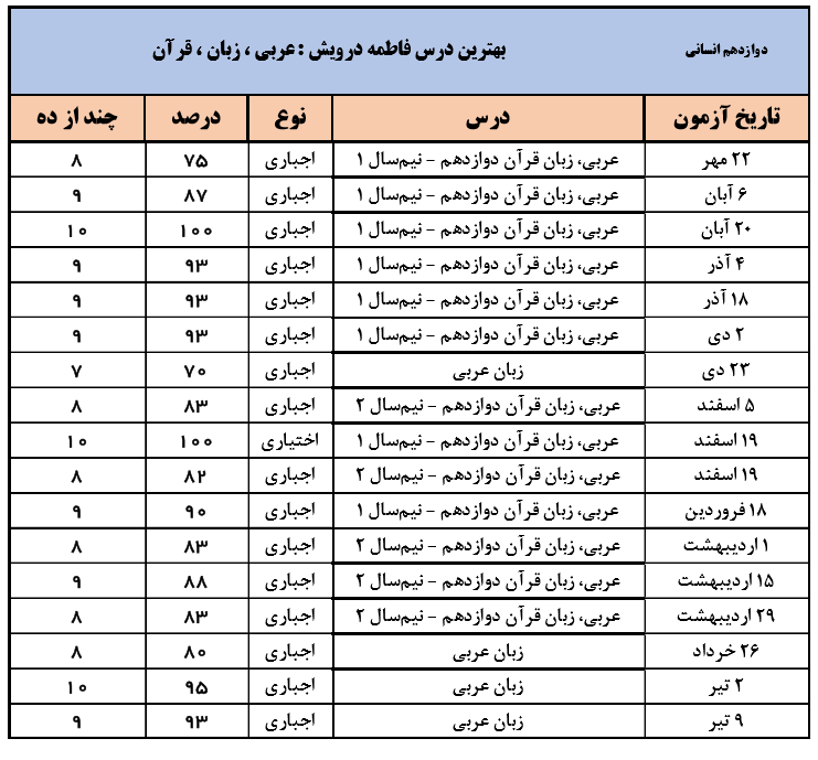 من در دروس علوم و فنون و درس عربی پیشرفت خوبی داشته ام.