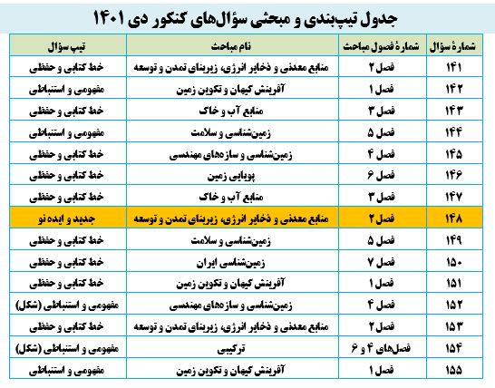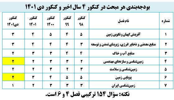 ● همانند کنکور 1401 در این کنکور هم از ترتیب فصول به ترتیب شماره سؤالها خبری نیست. به عبارتی نباید در درس زمینشناسی به دنبال نظم و توالی مبحثی سوالها بود.