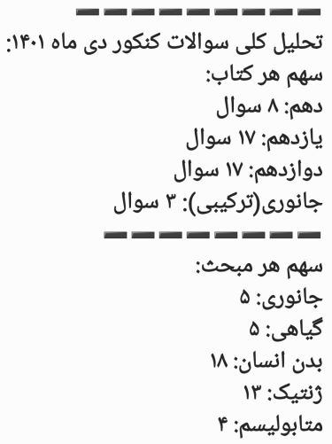 ● 1 سؤال جدید و ایده نو در کنکور دیماه 1401 مطرح شد که تقریباً مانند کنکور قبل است.