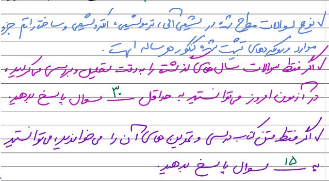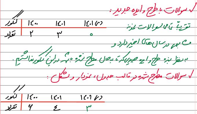 1.سوالات مطابق انتظار با رویکرد مفهومی تر شدن و استباط بیش تر از کتاب درسی