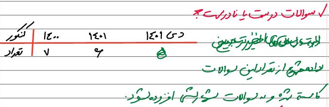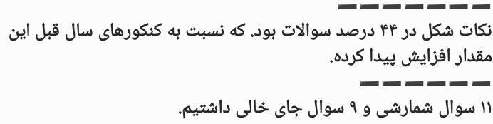 ● در کنکور 1401، 3 سؤال شکلی مطرح شده بود که در این کنکور به 2 سؤال کاهش یافت.