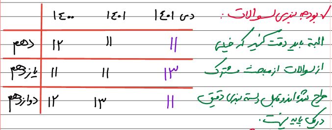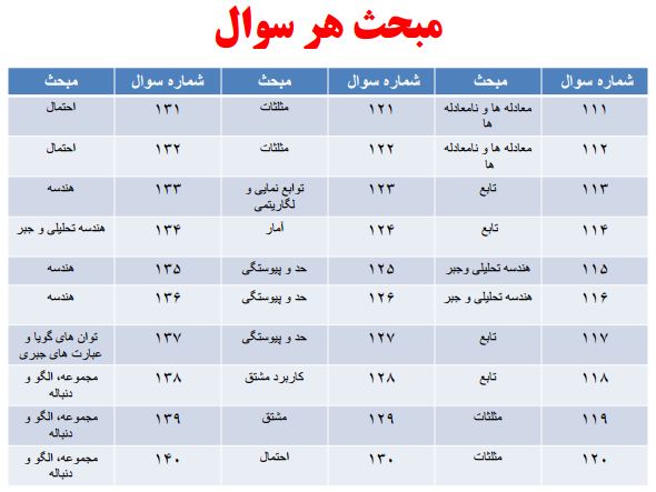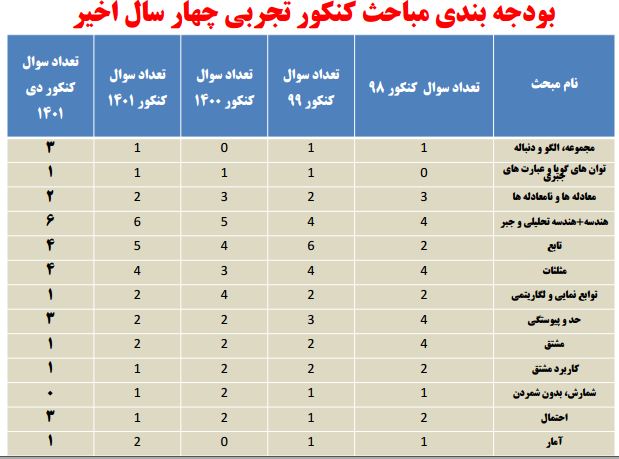 4.از مباحث حذف شده هرگز سوال مطرح نشده است (مطابق روال سال های اخیر)