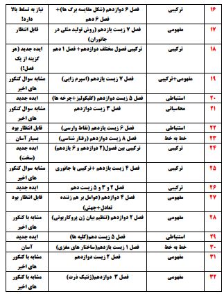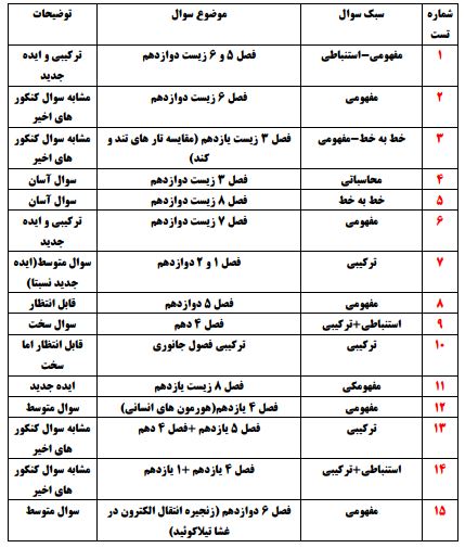 3.بیش تر تست ها از سال دوازدهم یا ترکیبی با این پایه مطرح شده بود