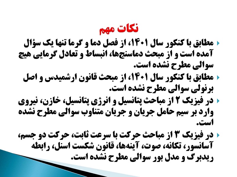 در مطلب گرایشهای درس فیزیک کنکور دی ریاضی1401- بابک اسلامی است