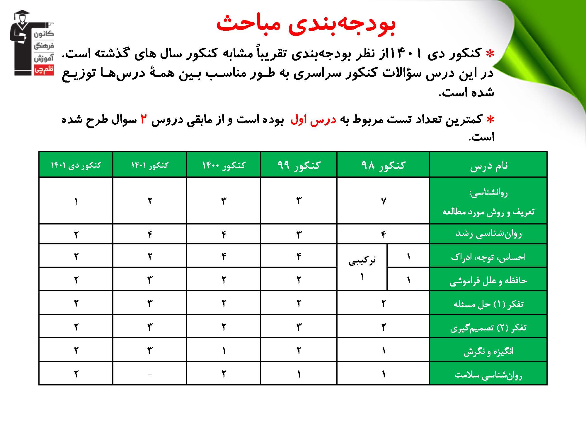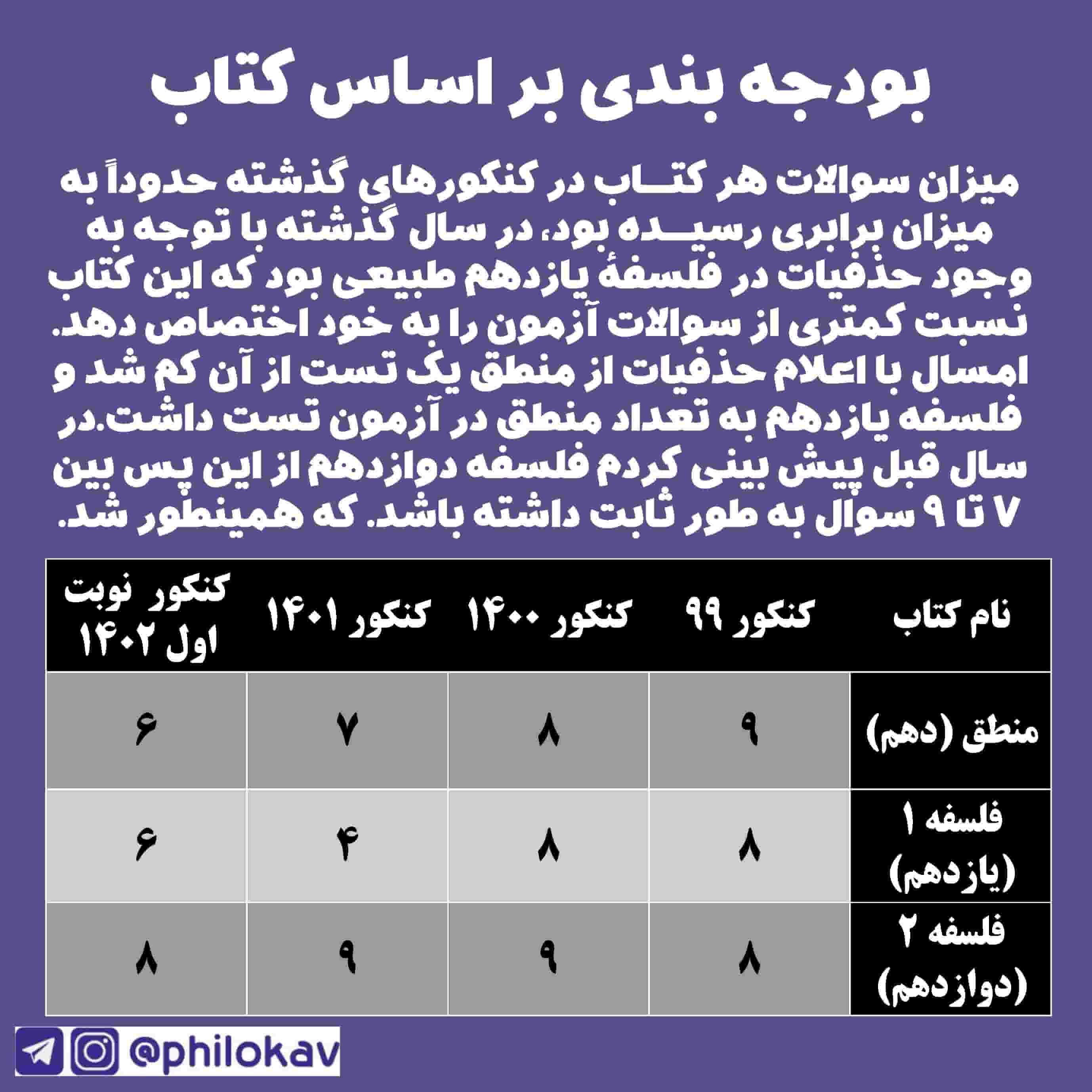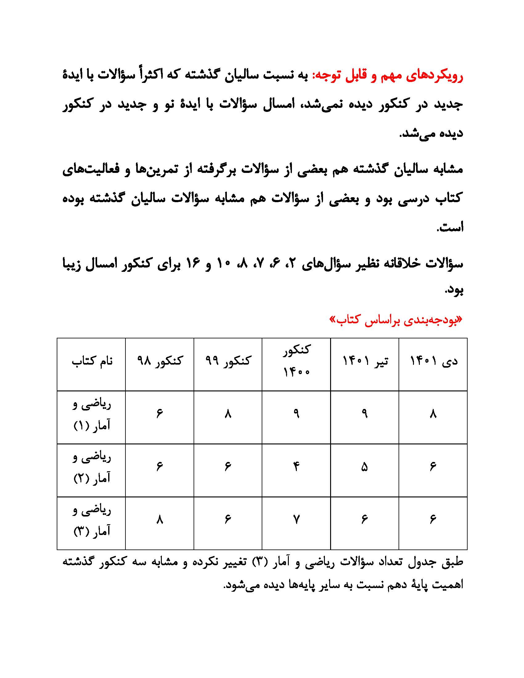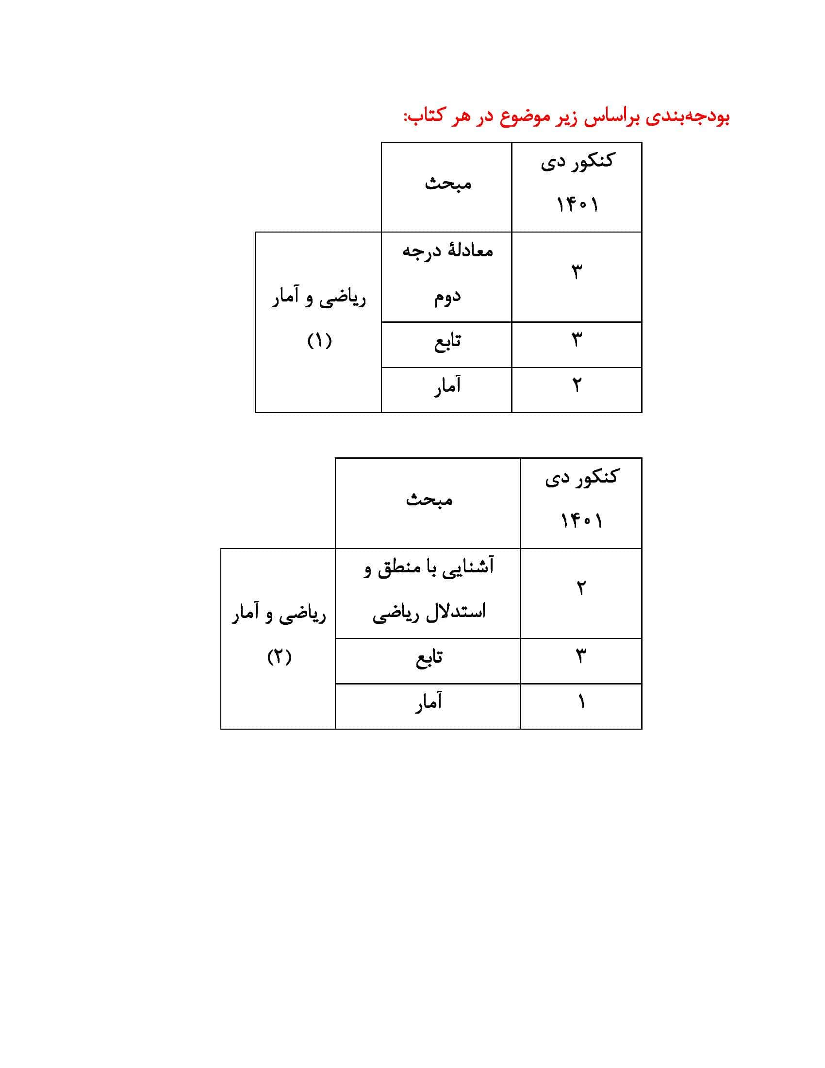 بودجه بندی درس ها در کنکور