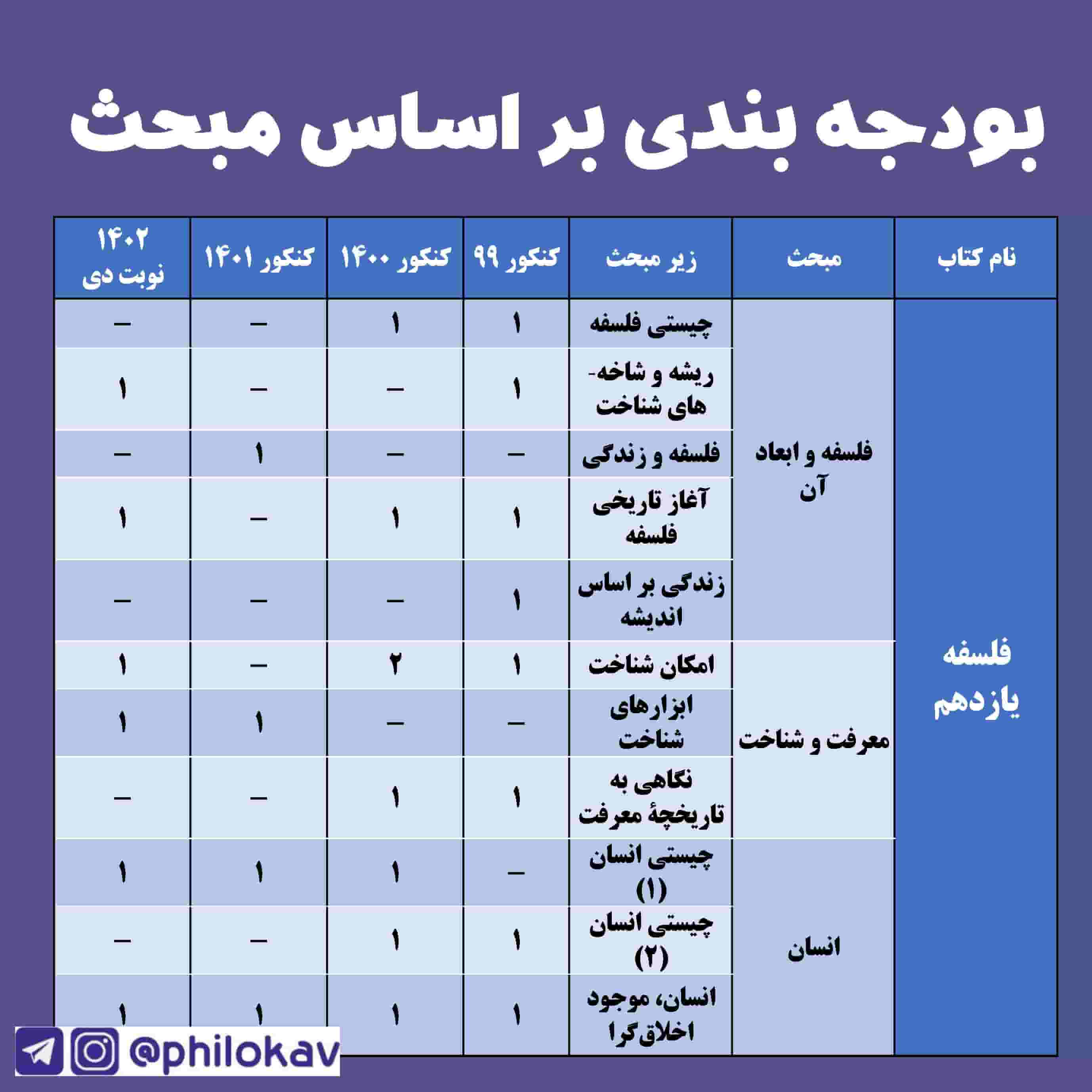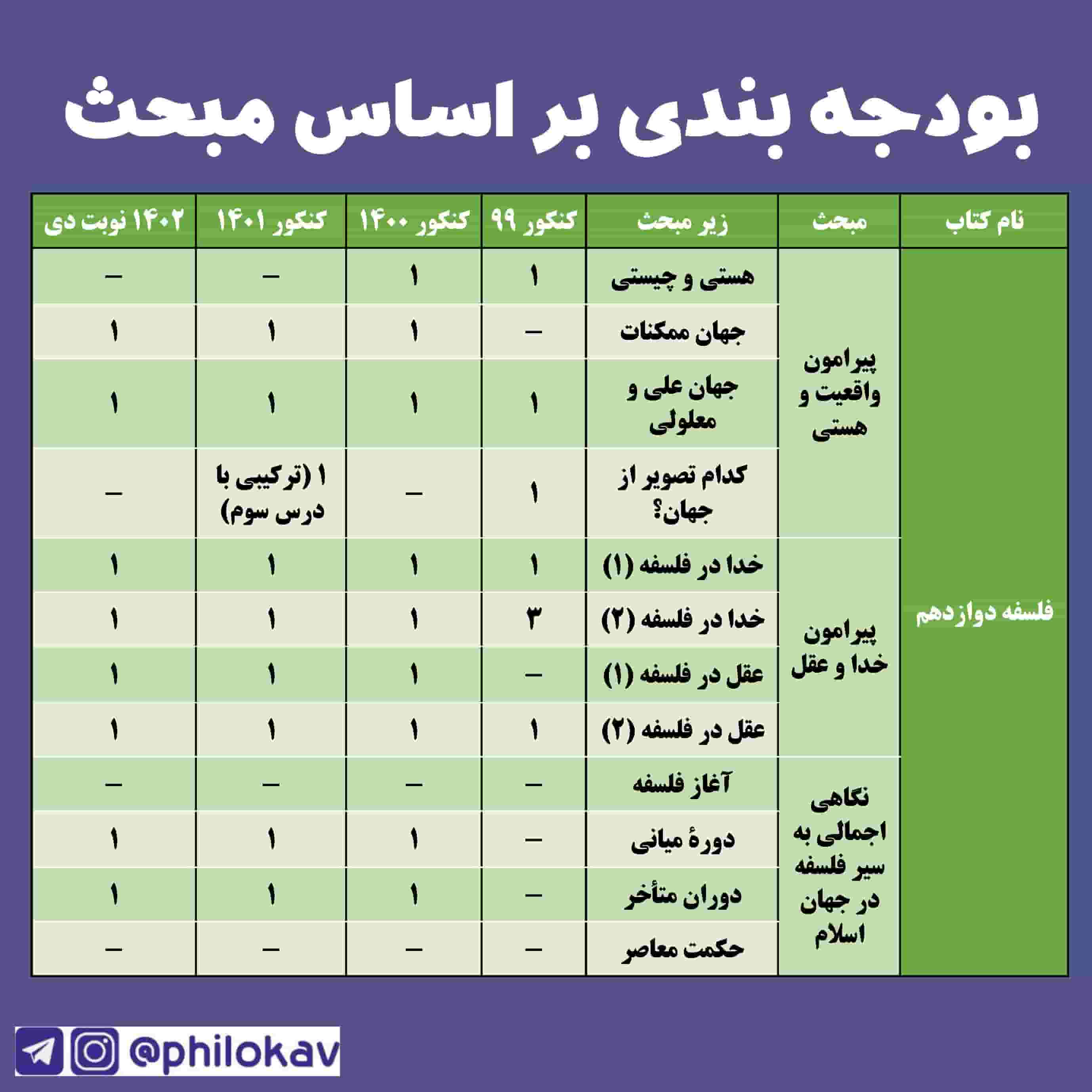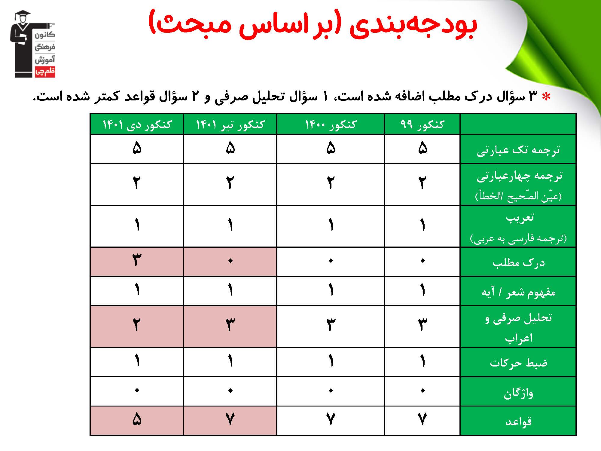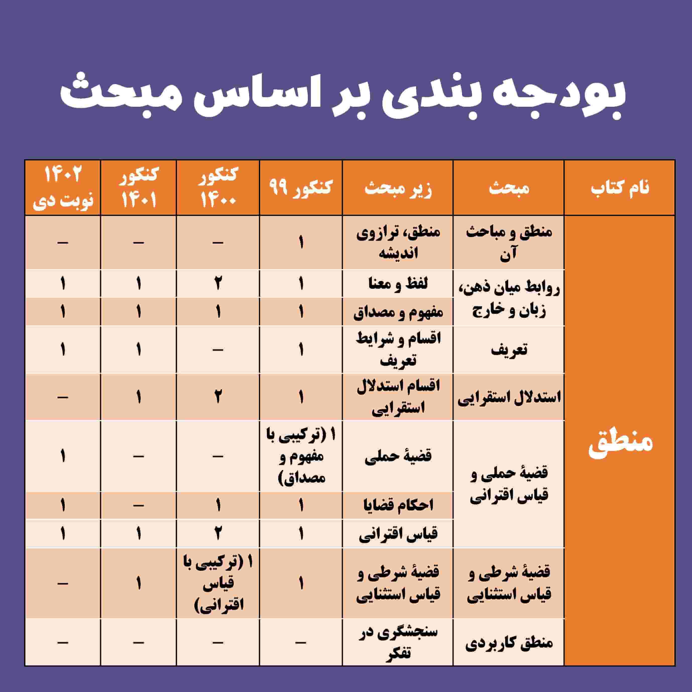 بودجه بندی درس ها در کنکور