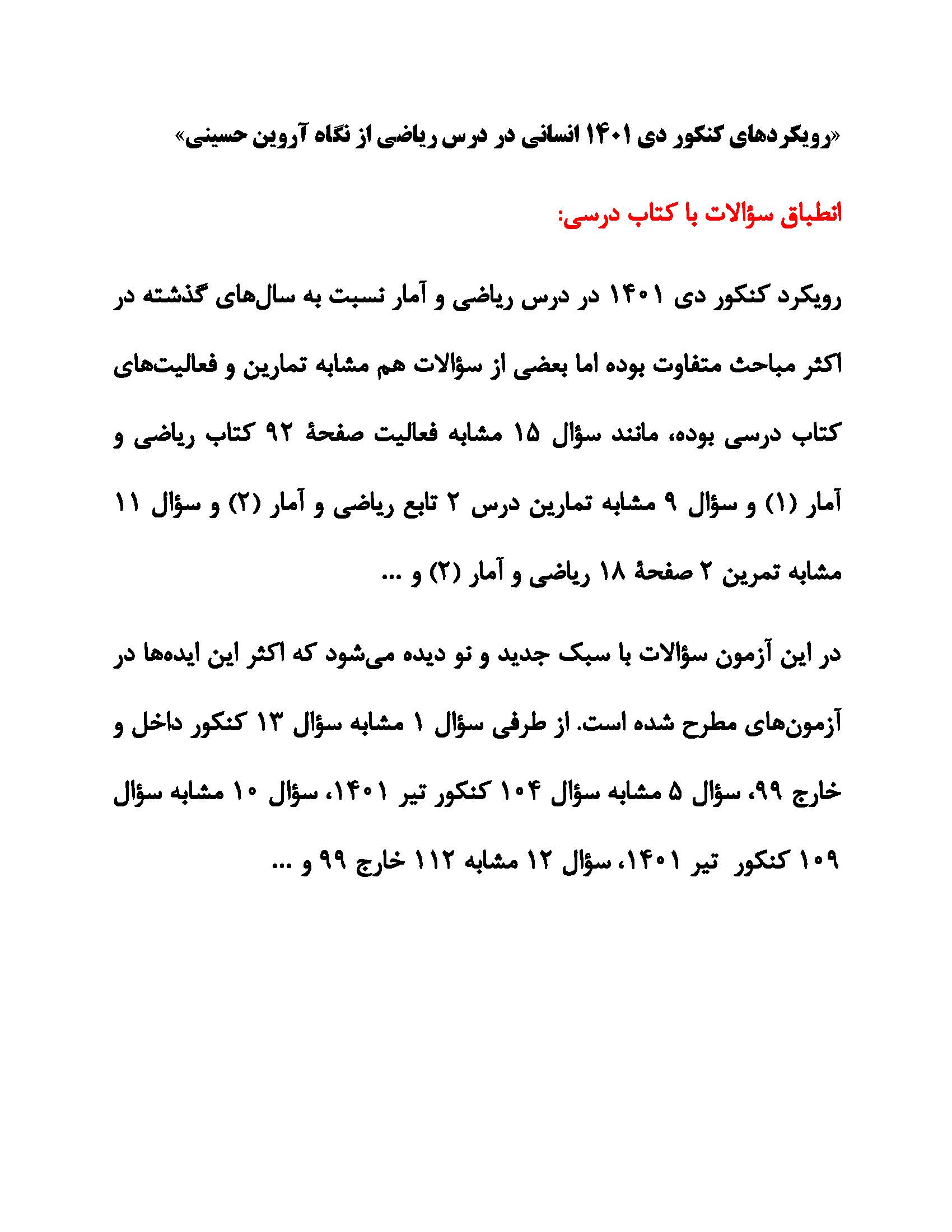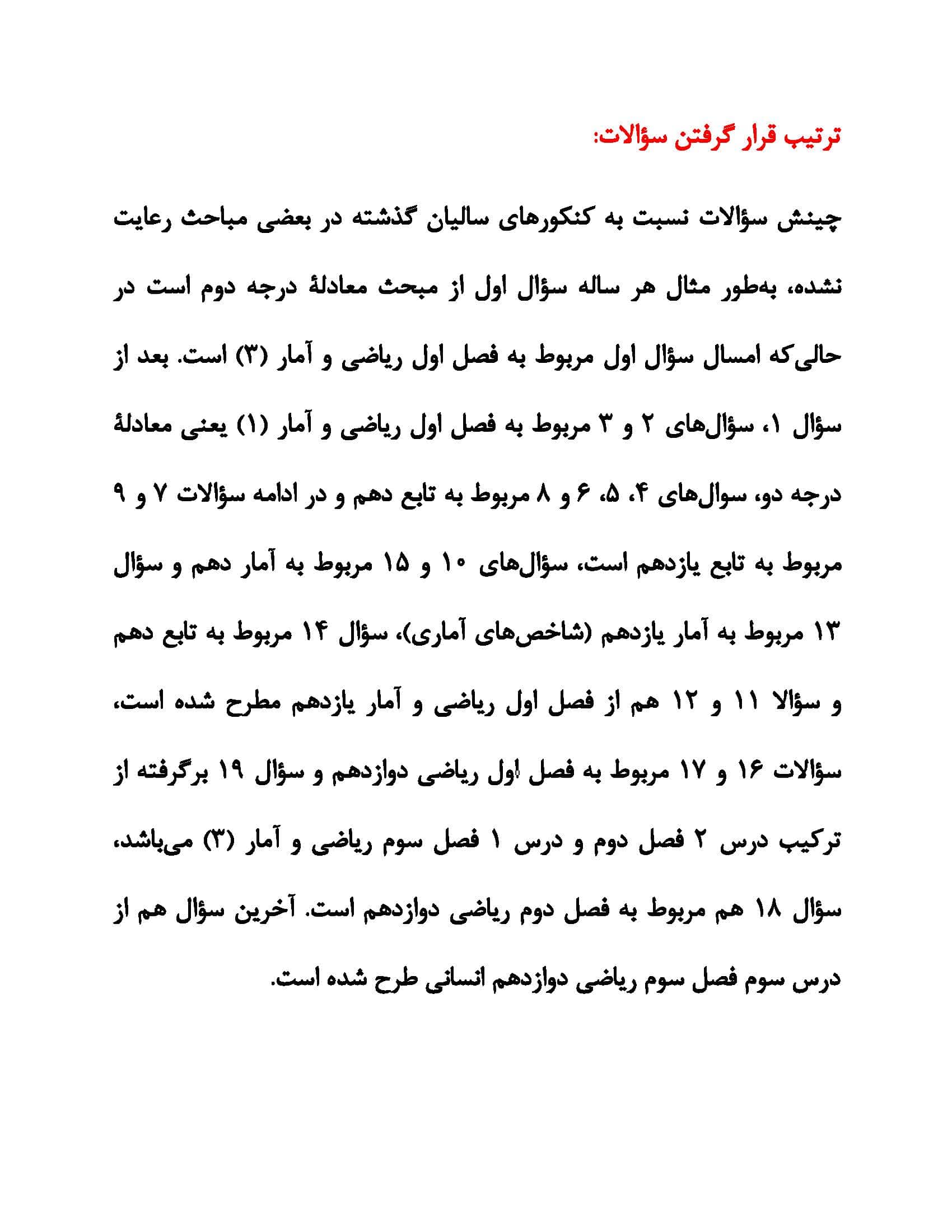 مطالب درسی کنکوری ها