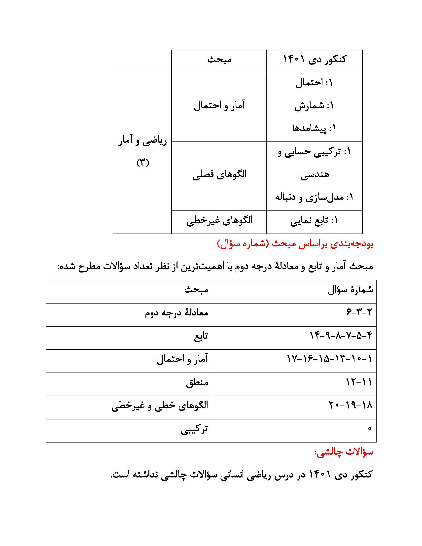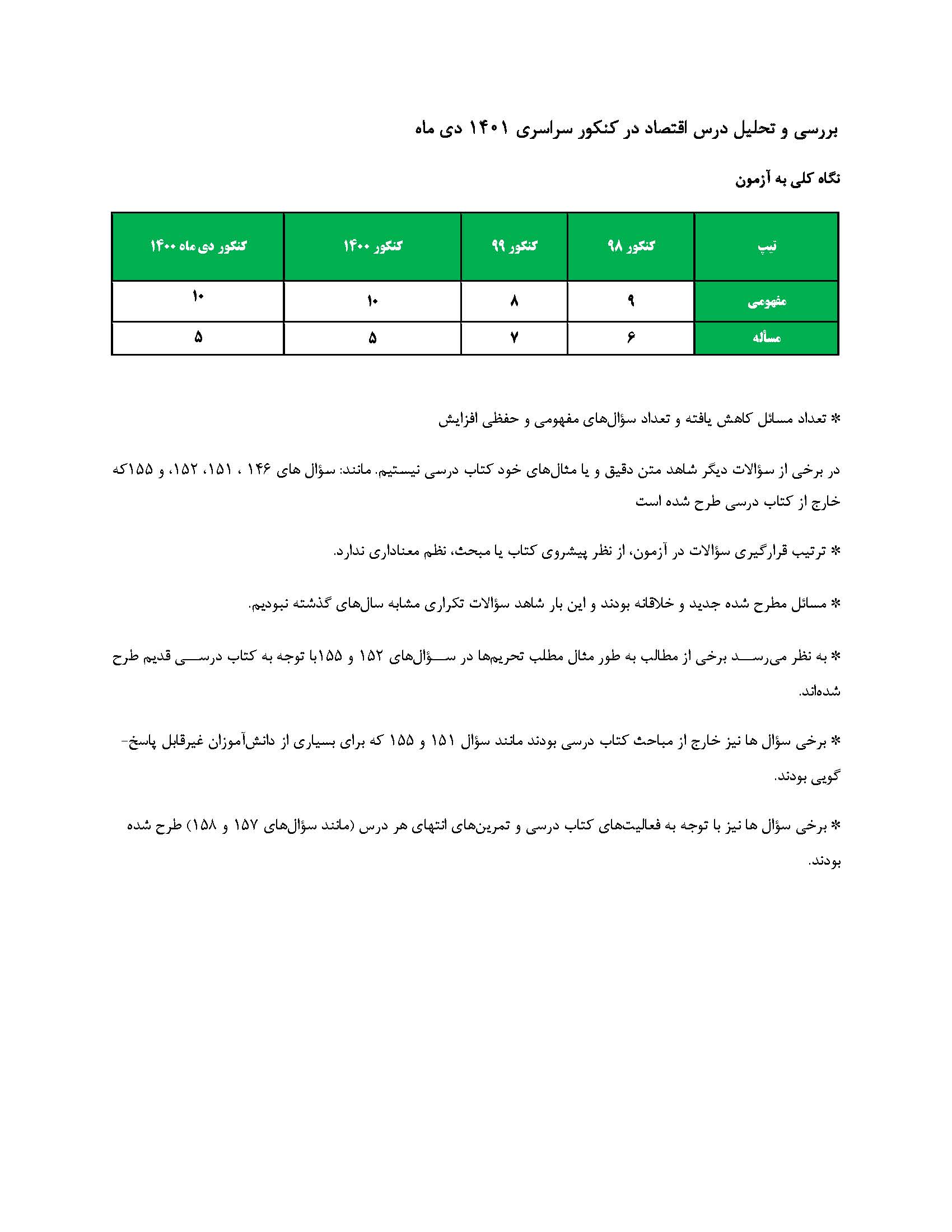 تحلیل کنکور دی 1401