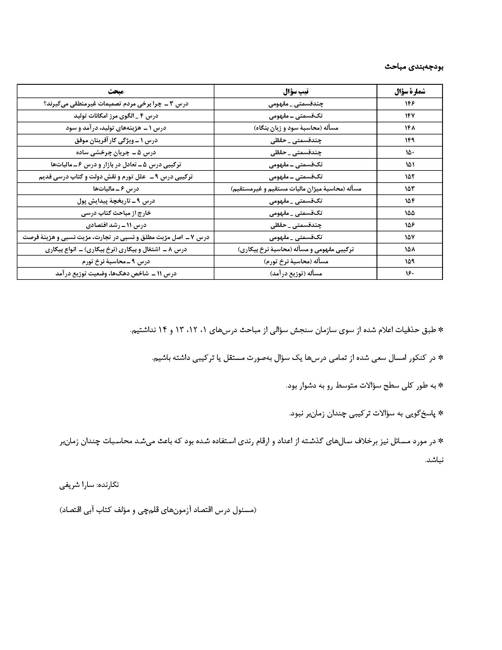تحلیل و پاسخ کنکور 1404