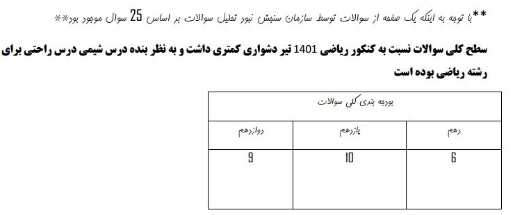 تحلیل سوالات شیمی رشته ریاضی در مطلب پیوست آمده است.