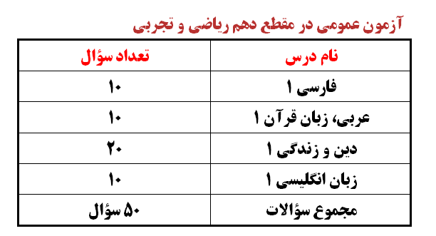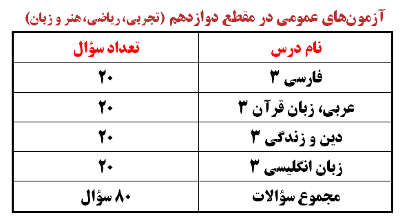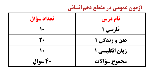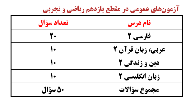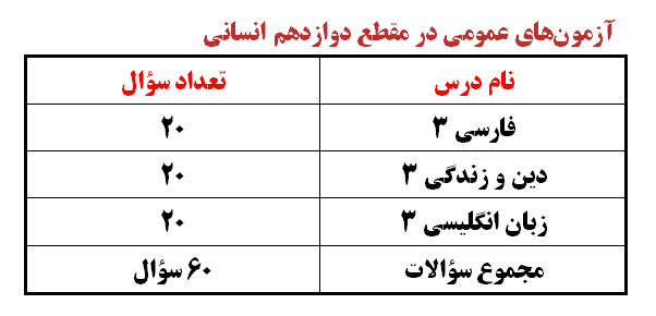 ویژگیهای آزمون عمومی 6 بهمن- مقاطع دهم، یازدهم و دوازدهم