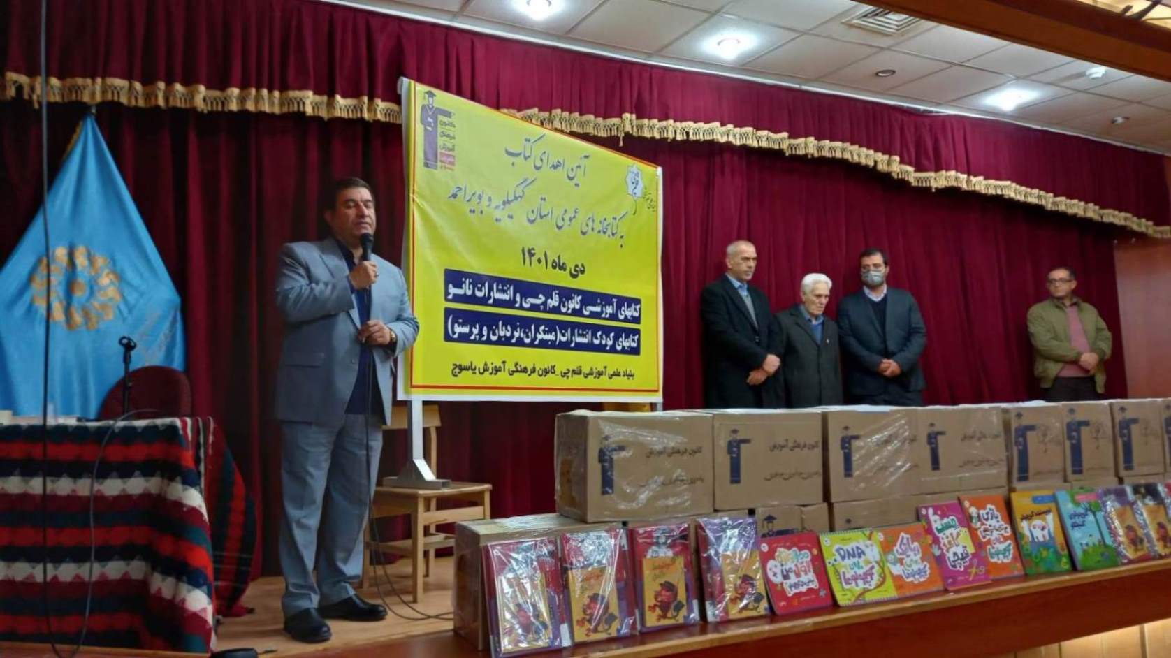 رمضانعلی محسنی بیان کرد: در ادامه پروژه اهدای کتاب به کتابخانههای عمومی کشور در سالجاری، روز یکشنبه پروژه اهدای کتاب به کتابخانههای عمومی استان کهگیلویهوبویراحمد با میزبانی خلیفه خلقیپور مسئول نمایندگی یاسوج و همراهی مسئولان نمایندگیهای باشت صفدر کرمی و گچساران يدالله مرادی و همچنین حسین سرمه مسئول واحد بورسیه بنیاد قلمچی و سیدریحان ناجیمقدم مسئول نظارت بر پروژههای دانشگاهی با حضور ۵۱ نفر از نمایندگان کتابخانهها معادل ۸۲ درصد آنان و مدیرکل و مسئولان کتابخانههای عمومی استان در محل اجرای پروژه (کتابخانه مرکزی کهگیلویهوبویراحمد در یاسوج) به اجرا درآمد.