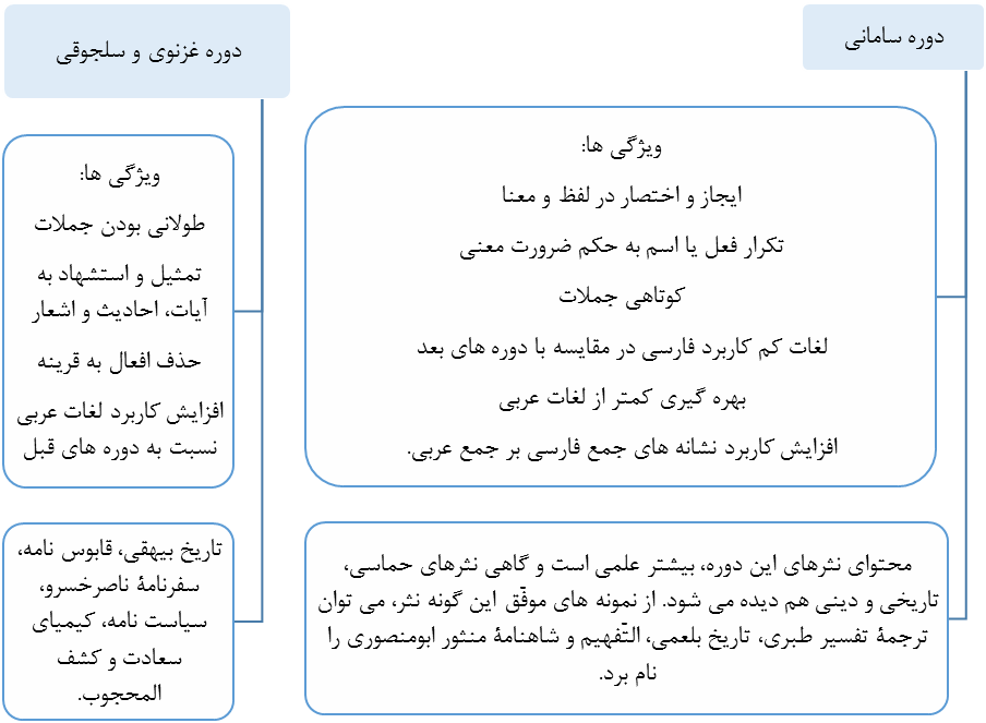 نثر سبک خراسانی به دو دوره 1.سامانی 2.غزنوی و سلجوقی تقسیم می شود.