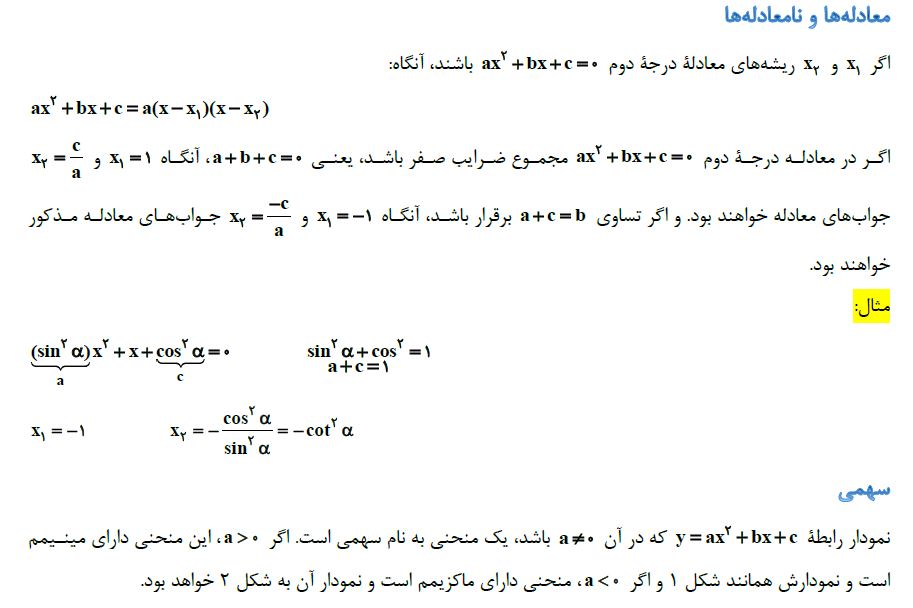خوندن این درسنامه دلیل بر یادگیری نیست. حتما باید کلی مثال تشریحی و تستی حل کنی، مرور کنی و از این فرمول های تستی گفته شده توی حل سوالاتت استفاده کنی