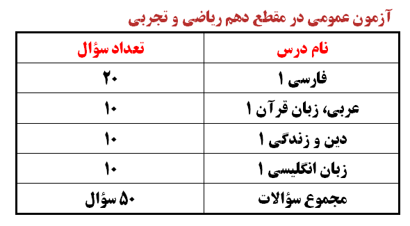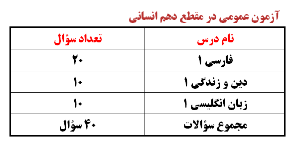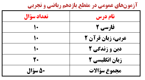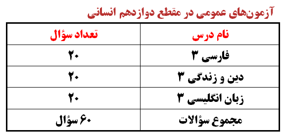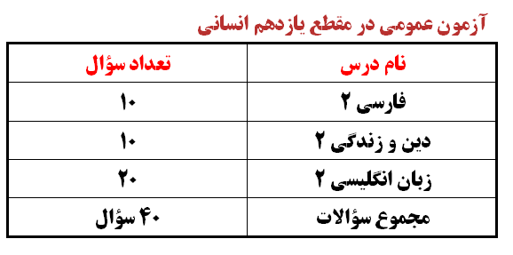 ویژگیهای آزمون عمومی 20 بهمن- مقاطع دهم، یازدهم و دوازدهم