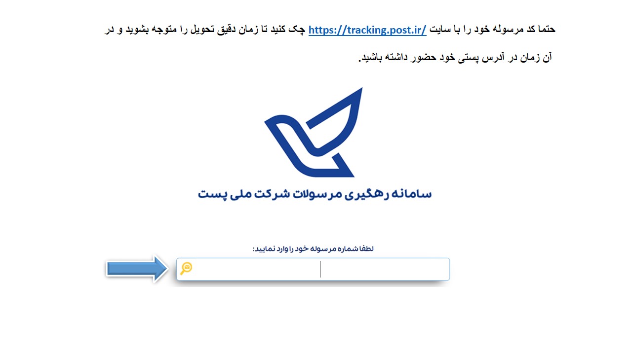 * لینک چک کردن مرسوله پستی "https://tracking.post.ir"