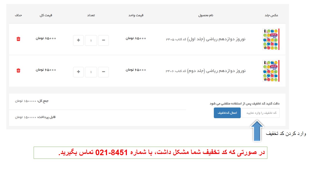 * درصورت مشکل داشتن کد تخفیف با شماره "6463-021" تماس بگیرید.