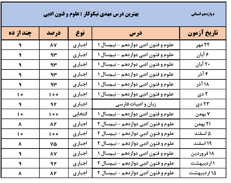 هدف دیگرم توجه و تست زنی در درس های دهم و یازدهم و دوازدهم نیم سال اول است، در واقع من دفترچه اختیاری را در آزمون ها پاسخ خواهم داد.
