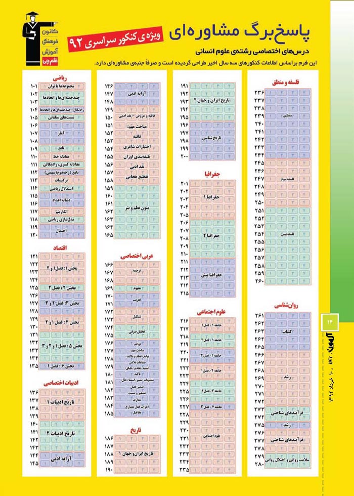 آنگاه بر آن شدیم تا چیدمان مباحث مختلفی را که در کنکور از آن سؤال مطرح میشود شناسایی کرده و در قالب یک پاسخبرگ مشاورهای ارائه کنیم تا شما بتوانید با تمرین 3روز یکبار به کمک این پاسخبرگ مشاورهای، مسیر خود را با آرامش طی کنید.