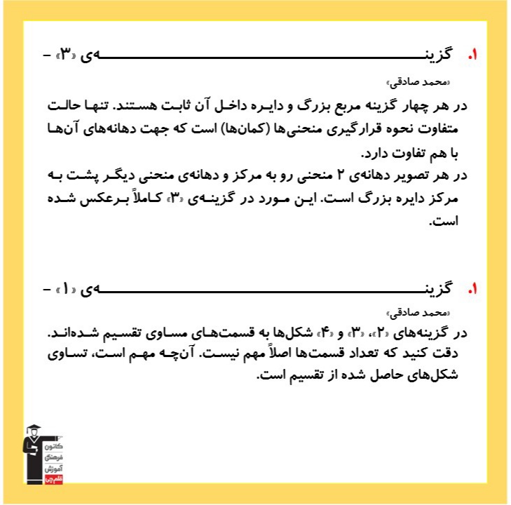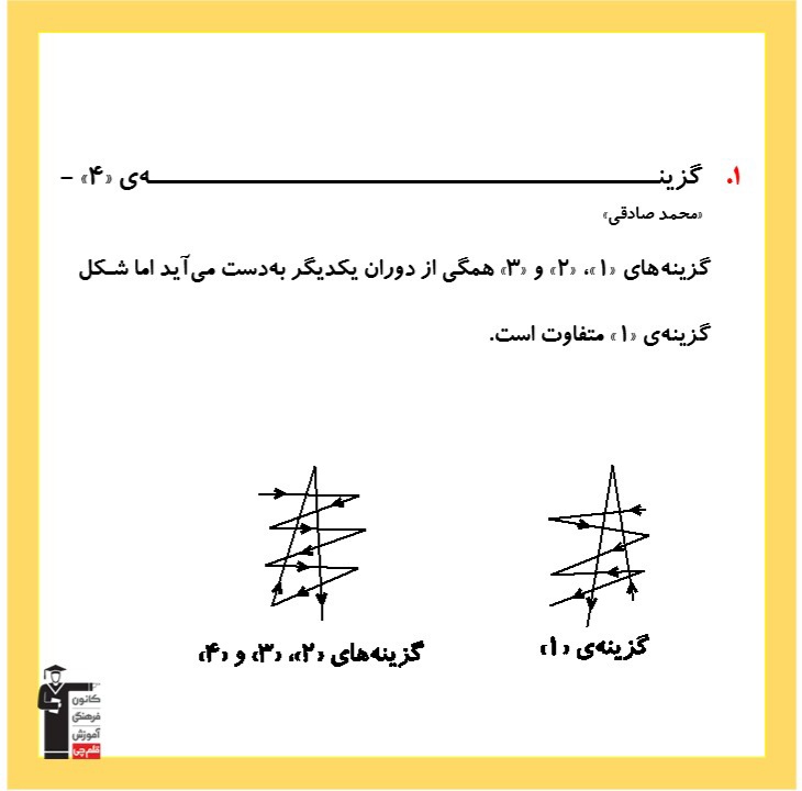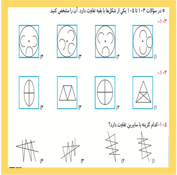 دانش آموزان عزیز سلامدر این بخش دو نمونه سوال هوش تصویری و فضایی به همراه پاسخ تشریحی جهت آمادگی در آزمون برای شما بارگزاری شده است. سوالات رو اول خودتون حل کنید بعد جوابا رو بررسی کنید .