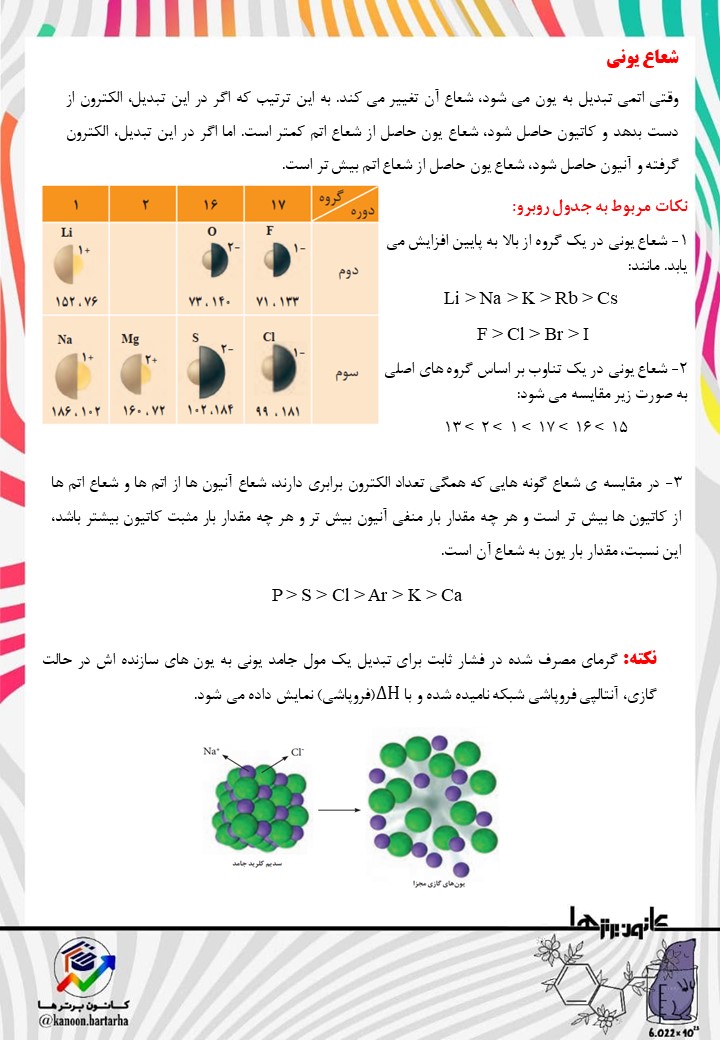 ب) در مواردی که این حاصل ضرب بین چند ترکیب یونی برابر است، ترکیب یونی که شعاع یون های سازنده ی آن کوچکتر باشد، H∆ (فروپاشی) بیش تر است.