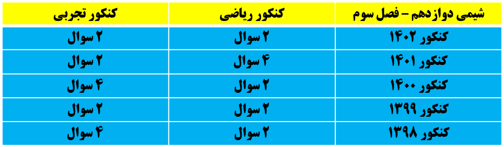 در این مطلب میخواهیم با هم به جمع بندی فصل سوم شیمی دوازدهم و هم چنین خلاصه نکاتی که برای پاسخگویی به سوالات آزمون باید به آنها مسلط باشید، بپردازیم.
