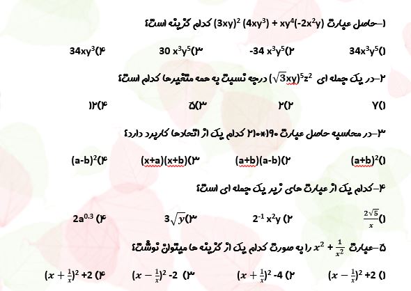 نکته: در یک عبارت جبری فقط جمله های متشابه را می توان جمع جبری کرد.