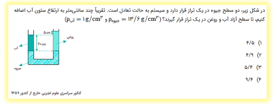 - نمیخوام فرمولی حفظ کنی از فرمول فشار مایعات میتونی ارتفاع رو به دست بیاری.