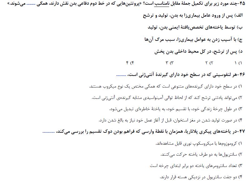 سلام بچه ها حالتون چطوره من حانیه سرایانی هستم و در این بخش قراره باهمدیگه آزمونک زیست رو حل کنیم