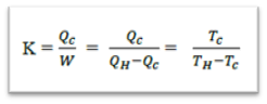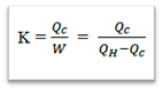 - ضریب عملکرد یخچال را با K نمایش می دهندکه طبق رابطه زیر تعریف می شود :