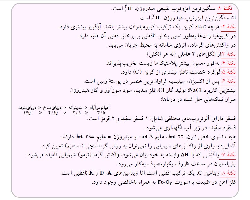 درسنامه شیمی یازدهم آزمون 7 فروردین