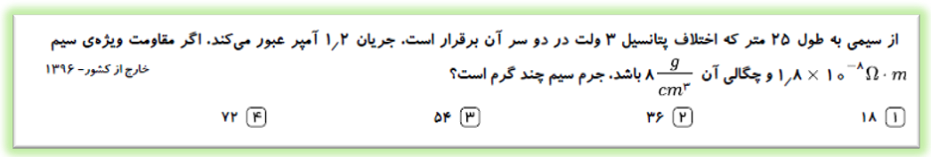 3-جنس رسانا: مقاومت هر رسانا با رسانای دیگر متفاوت است.